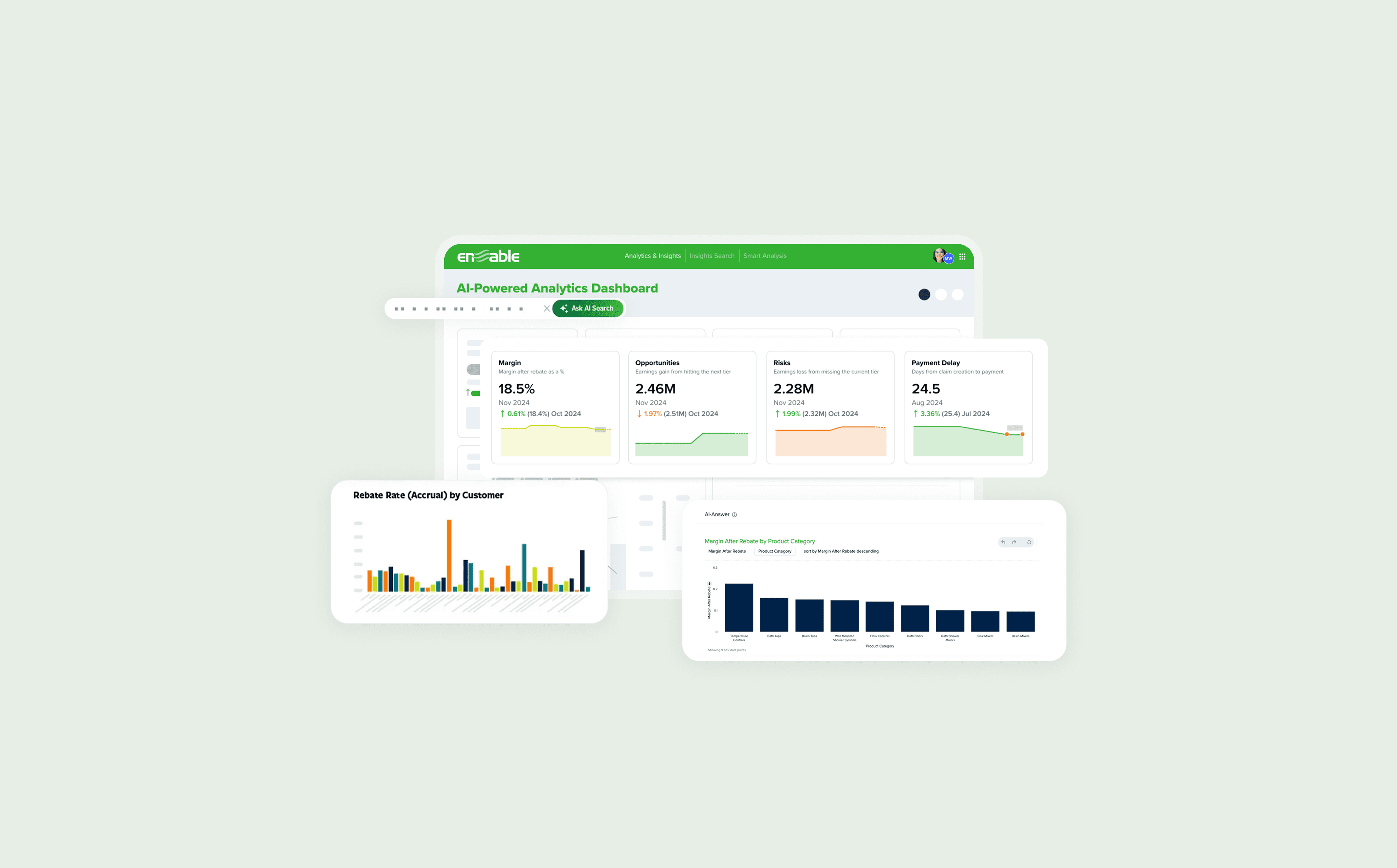 Enable’s platform supports highly complex rebate workflows, negotiations, forecasting, and financial calculations, serving over 100,000 monthly active users. Despite its power, users struggled to transform large volumes of rebate data into actionable insights due to fragmented UX and high cognitive load.